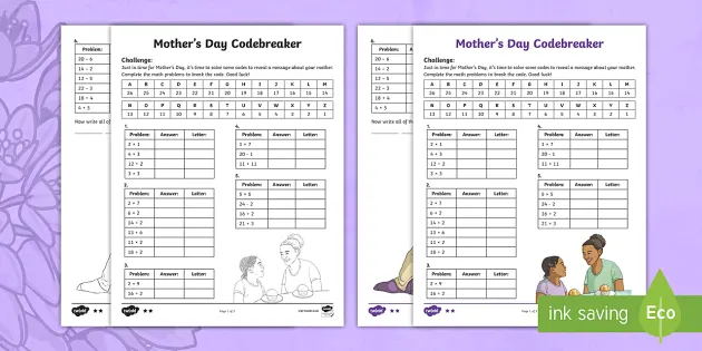Free mother's day math worksheets